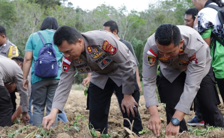 Bengkayang, Kalbar – Kepolisian Resor Bengkayang Polda Kalbar melaksanakan penanaman dan budidaya Ubi Madu sebagai upaya ketahanan pangan serta usaha percepatan penanganan stunting di Kabupaten Bengkayang khususnya di Kecamatan Teriak. Kegiatan tersebut dipimpin langsung oleh Kapolres Bengkayang AKBP Dr. Bayu Suseno, S.H., S.I.K., M.M., M.H., dengan didampingi Kapolsek Teriak dan Personelnya beserta Camat Teriak, Ibu..