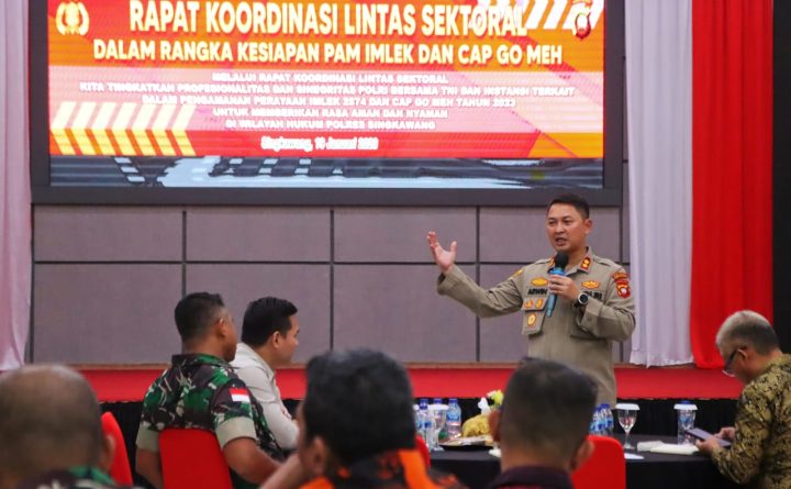 Singkawang, Kalbar. – Telah dilaksanakan kegiatan Rapat Koordinasi Lintas Sektoral dalam rangka Kesiapan Pengamanan Imlek 2574 dan Cap Go Meh Tahun 2023 dengan tema “Melalui Rapat Koordinasi Lintas Sektoral Kita Tingkatkan Profesionalitas dan Sinergitas Polri Bersama TNI dan Instansi Terkait Dalam Pengamanan Perayaan Imlek 2574 dan Cap Go Meh Tahun 2023 Untuk Memberikan Rasa Aman..