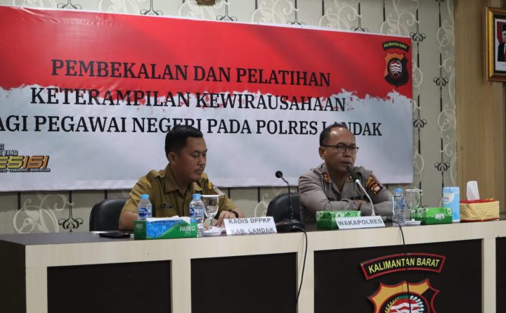 Polres Landak ,Polda Kalbar,SihumasBertempat di Aula BKPM Polres Landak dilaksanakanKegiatan Pembekalan dan Pelatihan Keterampilan Kewirausahaan bagi Pegawai Negeri Pada Polres Landak T.A. 2023 yang diikuti oleh personel Polres Landak yang akan memasuki masa purna sebagai bekal di masa menjelang pensiun nantinya, Selasa (17/01/2023). Kegiatan Pelatihan dibuka oleh Wakapolres Landak AKBP SRI HARJANTO, S.H., dihadiri oleh..