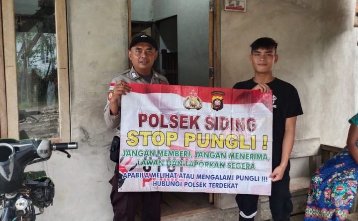 Personel Polsek Siding polres Bengkayang Polda Kalbar dalam mewujudkan pelayanan publik yang bebas dari praktek KKN lakukan himbauan Stop Pungli. Pada himbaunnya terkait Pungli Bripka Nandan.P menyampaikan Sosialisasi Saber Pungli sesuai Perpres nomor 87 tahun 2016 tentang Satuan tugas Sapu bersih Pungutan liar. Kamis (12/01/23). Sektor Siding upaya pencegahan berupa penyampaian himbauan dan mensosialisasikan kepada..