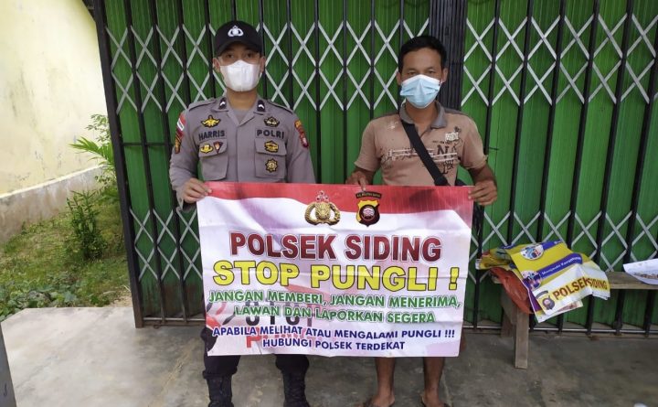 Pencegahan Pungli Polsek Siding Polres Bengkayang melaksanakan himbaun Stop Pungli. Senin (09/01/23) Pencegahan terjadinya pungutan liar atau pungli di wilayah Kecamatan Siding kabupaten Bengkayang Daniel Harris Personil Polsek Siding Polres Bengkayang Polda Kalbar hadir ketengah masyarakat untuk memberikan Sosialisasi tentang Saber Pungli di Kecamatan Siding Kabupaten Bengkayang. Dalam kegiatannya Daniel Harris temui Dius warga dusun..