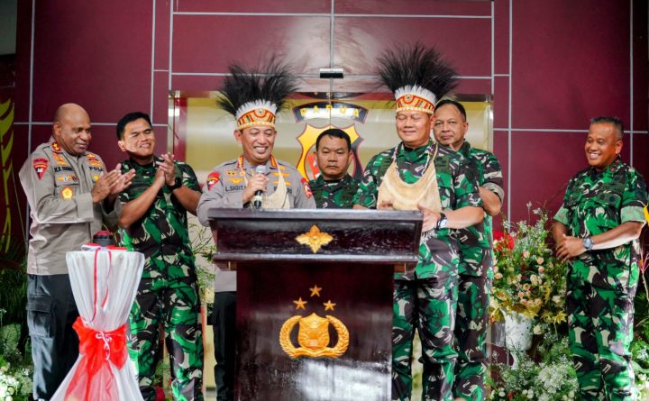 Papua – Kapolri Jenderal Listyo Sigit Prabowo, Panglima TNI Laksamana Yudo Margono hingga seluruh Kepala Staf TNI AD, AL dan AU meresmikan gedung baru Polda Papua, Minggu, 8 Januari 2023. “Tentunya juga berbeda dari biasa dan ini mungkin karena pak Kapolda dan seluruh anggota berdoa luar biasa, jadi hari ini khusus Polda Papua yang resmikan..