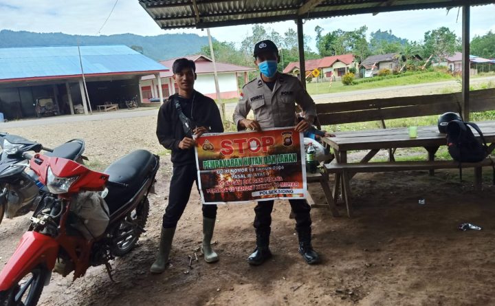 Polsek Siding Polres Bengkayang Polda Kalbar himbau dalam rangka Cegah Kebakaran Hutan dan Lahan di kecamatan Siding, Jumat (06/01/23). Aipda Boni Setiawan menuju di dusun Padang desa Siding kecamatan Siding kabupaten Bengkayang, di areal permukiman, Aipda Boni Setiawan bersama warga turut mendukung pencegahan terjadinya Kebakaran Hutan dan Lahan melalui stop Karhutla yang disampaikan personel Polsek..