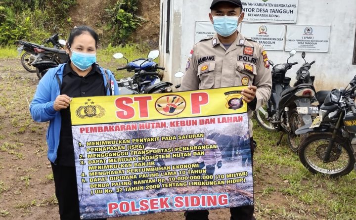 Sosialisasi Karhutla dilakukan pada saat kegiatan Patroli lokasi pemukiman warga desa Tangguh kecamatan Siding kabupaten Bengkayang. Kamis (05/01/23) Dalam kesempatan tersebut Bripka Nandang.P mengajak masyarakat untuk menjaga situasi kamtibmas tetap kondusif apabila terjadi permasalahan agar informasi, adukan dan laporkan kepolsek Siding dengan mengedepankan kekeluargaan dan kearifan lokal, Ia juga sampaikan terkait Karhutlasesuai dengan pasal 187..