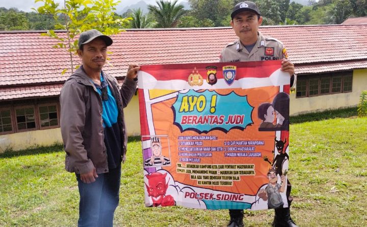 Dalam rangka antisipasi praktek perjudian sosialisasi terus dilakukan personel Polsek Polsek Siding Polres Bengkayang Polda Kalbar. Kamis (29/12/22) Himbauan dilakukan pada giat sambang di Desa Siding Kecamatan Siding Kabupaten Bengkayang. Pada himbaunnya Bripka Nandang Prasojo menghimbau kepada masyarakat tolak kejahatan; Terorisme, Narkoba, Miras dan Segala bentuk praktek judi, judi baik judi togel, judi kartu, judi..