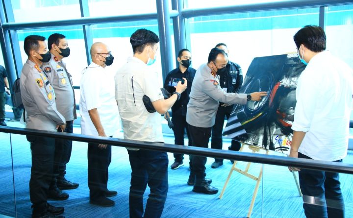 Jakarta – Sebanyak 20 lukisan karya penyandang disabilitas yang terpilih dari kegiatan Police Art Festival 2022 dipajang di Terminal 3 Bandara Soekarno Hatta (Soetta), Tangerang, Banten, Kamis (29/12/2022). Dipamerkan lukisan di area kedatangan domestik itu sengaja untuk memanjakan mata penumpang dan juga mempercantik megahnya Terminal 3 Bandara Soetta. Selain itu, bentuk apresiasi Kepolisian Negara Republik..