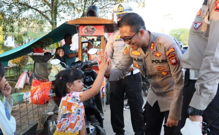 Kapolres Ketapang Polda Kalbar AKBP Yani Permana turun langsung ke jalan raya untuk menyapa warga masyarakat yang beraktifitas di sekitararan area Taman Kota Ketapang, Selasa (22/11/2022) Pukul 16.00 wib. Satu persatu warga masyarakat baik pengguna jalan, pengunjung taman serta para penjual asongan yang terbiasa menggelar lapak dagangannya di area taman, disapa dan diajak bercengkrama oleh..