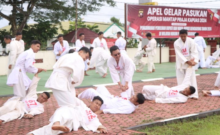 Bengkayang, Kalbar – Personel Polres Bengkayang Polda Kalbar mengikuti kegiatan bela diri dalam uji kesamaptaan jasmani berkala periode 1 tahun 2025, Rabu (5/2/24) pagi. Kegiatan ini digelar sebagai upaya untuk menjaga kebugaran fisik, meningkatkan keterampilan bela diri, dan memastikan kesiapan operasional dalam menjalankan tugas. Kegiatan yang berlangsung di lapangan apel Mapolres Bengkayang dan melibatkan instruktur..
