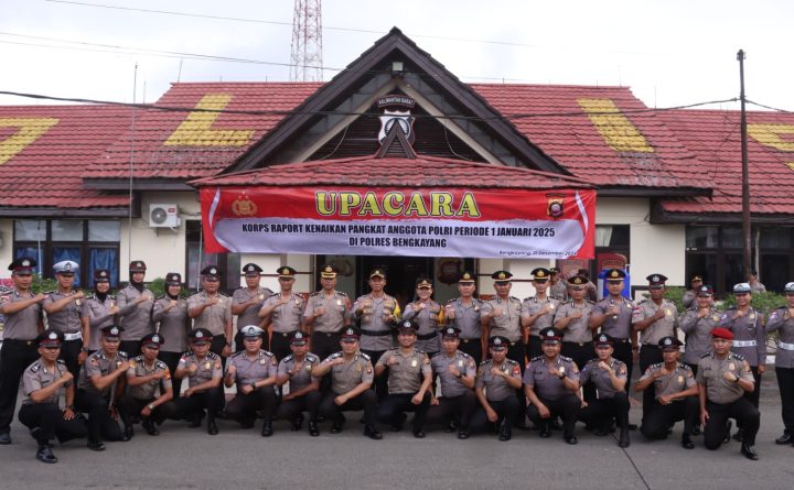 Bengkayang, Kalbar – Kepolisian Resor Bengkayang Polda Kalbar menggelar Upacara Korps Raport Kenaikan Pangkat Anggota Polri Periode 1 Januari 2025, bertempat di halaman Mapolres Bengkayang, Selasa (31/12) pagi. Upacara yang dipimpin langsung oleh Kapolres Bengkayang, AKBP Teguh Nugroho, S.H., S.I.K., M.I.K., dihadiri para Pejabat Utama (PJU) Polres Bengkayang, Kapolsek Jajaran, anggota Bhayangkari, serta seluruh personel..