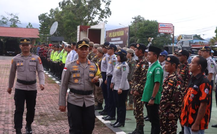 Bengkayang, Kalbar – Menyambut malam pergantian Tahun Baru 2025, Polres Bengkayang Polda Kalbar menggelar Apel Kesiapan Pengamanan di halaman Mapolres Bengkayang pada Selasa sore, (31/2/24). Apel tersebut dipimpin langsung oleh Kapolres Bengkayang, AKBP Teguh Nugroho, S.H., S.I.K., M.I.K., dengan melibatkan berbagai elemen keamanan dan masyarakat. Apel tersebut diikuti oleh personel gabungan dari Polri, TNI, Satpol..