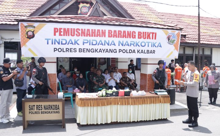 Bengkayang, Kalbar – Kepolisian Resor Bengkayang Polda Kalbar kembali menggelar pemusnahan barang bukti narkoba jenis sabu dan pil ekstasi, bertempat di Halaman Mapolres Bengkayang, Rabu (8/3/2023) pagi. Pemusnahan barang bukti tersebut dipimpin langsung oleh Kapolres Bengkayang dengan didampingi Pejabat Utama Polres Bengkayang dan dihadiri Wadirresnarkoba Polda Kalbar, Bupati Bengkayang diwakili PJ. Sekda Kab. Bengkayang, Ketua..