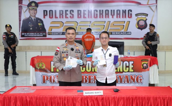 Bengkayang, Kalbar – Melalui Konferensi Pers yang digelar di Aula Tunggal Panaluan, Selasa (4/7/23) siang, Kapolres Bengkayang membeberkan pengungkapan kasus penyalahgunaan Bahan Bakar Minyak (BBM) jenis pertalite. Konferensi pers yang dipimpin Kapolres Bengkayang AKBP Dr. Bayu Suseno, S.H., S.I.K., M.M., M.H. tersebut didampingi juga oleh Pju Polres Bengkayang dan beberapa awak media elektronik maupun media..