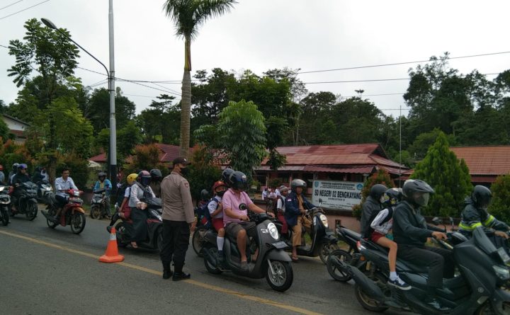 Anggota Polsek Bengkayang Polres Bengkayang, melaksanakan strong point Pagi dan pengaturan lalu lintas guna mencegah kemacetan, kecelakaan lantas, dan antisipasi kriminalitas. Strong Point Pagi dilakukan pada titik-titik keramaian serta rawan laka di jalan raya Sanggau Ledo tepatnya di depan SDN 02 Bengkayang,Senin (24/10/2022) Kapolsek Bengkayang Iptu Harto Simanjuntak menyampaikan bahwa hal ini menjadi kewajiban pihaknya..