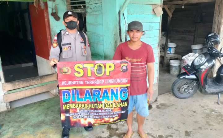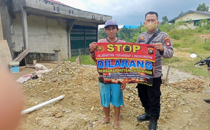 Minimalisir kebakaran hutan dan lahan Karhutla di wilayah binaanya. Bhabinkamtibmas Polsek Bangkayang Kota Jajaran Polres Bengkayang. Bripka Stepanus melakukan sosialisasi dan edukasi karhutla bersama warga, di Kel.Sebalo Kec.Bengkayang Kab. Bengkayang,Selasa (25/10/2022). Peran Bhabinkamtibmas bersama warganya sosialisasi dan membentangkan banner, sekaligus menghimbau warga tidak melakukan pembakaran hutan dan lahan. Bhabinkamtibmas menyampaikan pesan Kamtibmas terkait Kebakaran Hutan..