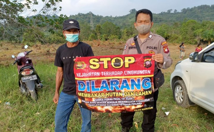 Minimalisir kebakaran hutan dan lahan Karhutla di wilayah binaanya. Bhabinkamtibmas Polsek Bangkayang Kota Jajaran Polres Bengkayang. Bripka Stepanus melakukan sosialisasi dan edukasi karhutla bersama warga, di Kel.Sebalo Kec.Bengkayang Kab. Bengkayang, Sabtu (03/09/2022). Peran Bhabinkamtibmas bersama warganya sosialisasi dan membentangkan banner, sekaligus menghimbau warga tidak melakukan pembakaran hutan dan lahan. Bhabinkamtibmas menyampaikan pesan Kamtibmas terkait Kebakaran..