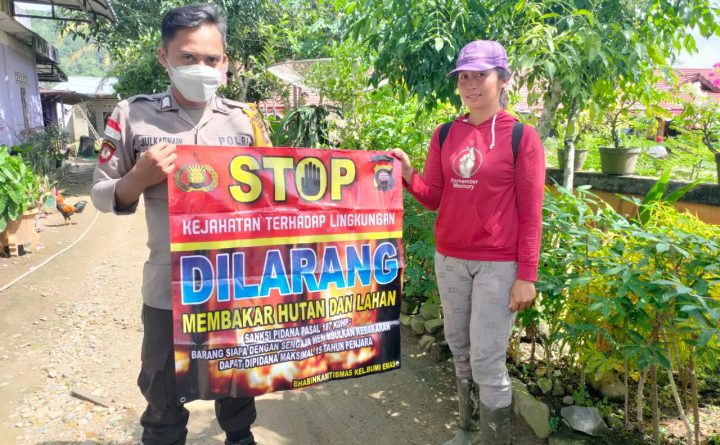 Minimalisir kebakaran hutan dan lahan Karhutla di wilayah binaanya. Bhabinkamtibmas Polsek Bangkayang Kota Jajaran Polres Bengkayang. Bripka Julkarnain melakukan sosialisasi dan edukasi karhutla bersama warga, di Kel.Bumi Emas Kec.Bengkayang Kab. Bengkayang,Senin (22/08/2022). Peran Bhabinkamtibmas bersama warganya sosialisasi dan membentangkan banner, sekaligus menghimbau warga tidak melakukan pembakaran hutan dan lahan. Bhabinkamtibmas menyampaikan pesan Kamtibmas terkait Kebakaran..