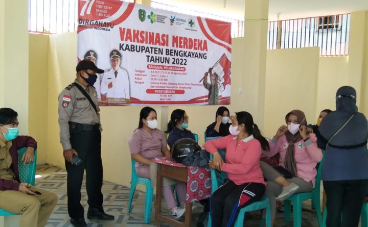 Polsek Bengkayang jajaran Polres Bengkayang, Polda Kalbar, melaksanakan monitoring dan pengamanan giat Vaksinasi di wilayah Kecamatan Bengkayang Kabupaten Bengkayang Selasa(09/08/2022). Kegiatan dilaksanakan dalam rangka monitoring dan pengamanan pelaksanaan Vaksinasi sesuai anjuran pemerintah dalam penanganan covid 19 dengan tetap mematuhi Protokol Kesehatan Menuju Herd Immunity. Kapolsek Bengkayang Iptu Harto Simanjuntak menyampaikan kegiatan yang dilakukan Polsek Bengkayang..