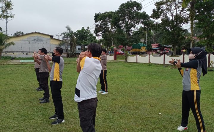 Untuk menjaga stamina, kesehatan serta imunitas tubuh di masa pandemi Covid-19, Polsek Bengkayang melaksanakan Olah raga pagi Jumat (29/07/2022). Kegiatan Olahraga ini merupakan kegiatan rutin yang dilaksanakan setiap hari Jumat pagi di Polsek Bengkayang. Kegiatan olahraga diawali dengan senam pemanasan di lanjutkan latihan beladiri kemudian senam pendinginan. Selain untuk menjaga kebugaran tubuh agar badan tetap..