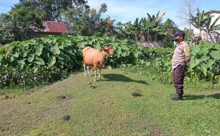 Polres Bengkayang beserta seluruh Polsek Jajaran terus melakukan pemantauan dan pengawasan hewan untuk mencegah penyebaran penyakit mulut dan kuku (PMK) pada hewan ternak. Seperti yang dilakukan oleh Aipda Danis Bhabinkamtibmas Ds.Bani Amas Bengkayang ,Minggu (31/7/2022) mendatangi salah satu warga yang memiliki peternakan sapi. Kepada Pemilik Peternakan Harso (49) yang berada di Desa.Bani Amas Kec.Bengkayang Bhabinkamtibmas..
