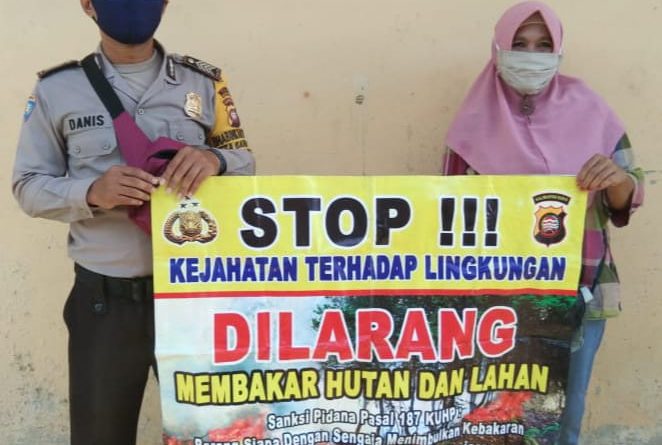 Dalam upaya meminimalisir kebakaran hutan dan lahan Karhutla di wilayah binaanya. Bhabinkamtibmas Polsek Bangkayang Kota Jajaran Polres Bengkayang. Bripka Stepanus melakukan sosialisasi dan edukasi karhutla bersama warga, di Kelurahan Sebalo Kec.Bengkayang Kab. Bengkayang,Selasa (23/11/2021). Peran Bhabinkamtibmas bersama warganya sosialisasi dan membentangkan banner, sekaligus menghimbau warga tidak melakukan pembakaran hutan dan lahan. Bhabinkamtibmas menyampaikan pesan Kamtibmas..