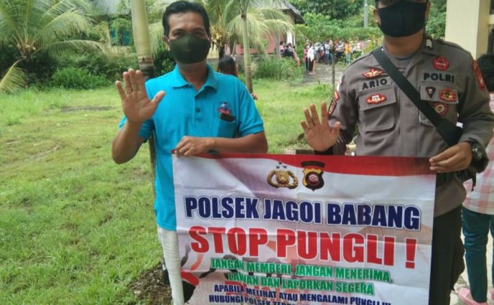 Tribratanews.polri.go.id.Polda Kalbar,Polres Bengkayang, Polsek Jagoi Babang. Jajaran polsek jagoi babang melalui Bhabinkamtibmas melakukan sambang ke desa binaan dan melakukan sosialisasi Stop Pungli kepada warga. Adapun sosialisasi Stop Pungli seperti yang di lakukan Bhabinkamtibmas desa jagoi Brigadir Sijabat saat menyambangi desa binaannya yakni dengan menemui warganya dan melakukan sosialisasi Stop Pungli lewat banner yang di gunakan..