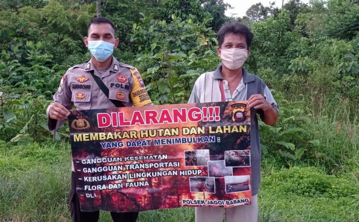polres bengkayang,Polsek Jagoi babang-Bhabinkamtibmas desa gersik brigadir anggong mencegah terjadinya karhutla dengan rutin menyampaikan sosialisasi dan imbauan karhutla kepada warga di desa binaan Senin (21/6/2021) Mencegah dan mengantisipasi terjadinya kebakaran hutan dan lahan tepatnya di desa gersik kecamatan jagoi babang brigadir anggong mengimbau warganya lewat banner karhutla agar warga tidak membakar lahan dan hutan terutama..