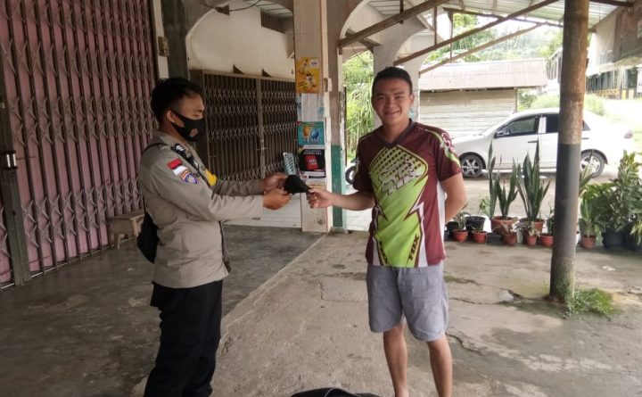 polres bengkayang,Panit sabhara polsek Jagoi babang Bripka Aprianus saat melaksanakan patroli dialogis di wilayah hukum polsek jagoi babang menyampaikan imbauan dan sosialisaaikan prokes 5M kepada warga Selasa (25/5/2021) Pada saat melakukan patroli dialogis Bripka Aprianus menyampaikan imbauan prokes 5M kepada warga, Ada pun sosialisasi 5M yang di sampaikan adalah mengimbau warga untuk menjaga jarak,memakai masker,mencuci..