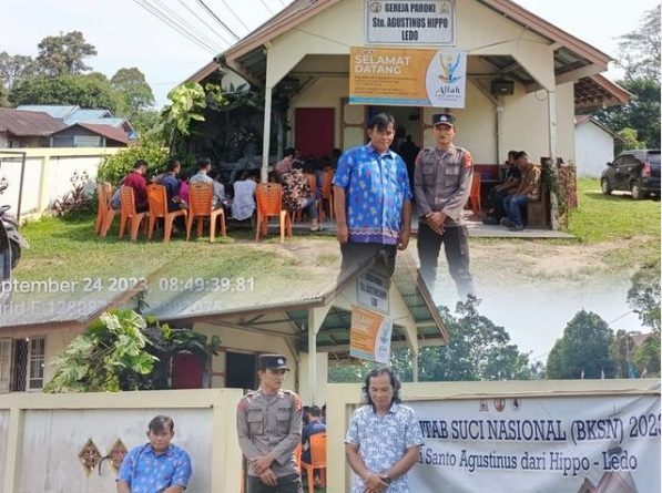 Tribratanews.polri.go.id Polda Kalbar – Polsek Ledo Polres Bengkayang Polda Kalimantan Barat,Polsek Ledo kembali melaksanakan giat Minggu Kasih dengan memberikan pengamanan gereja dalam rangka pelaksanaan Ibadah Kebaktian Minggu, Minggu (15/10/2023). Pengamanan yang dilaksanakan melalui giat Minggu Kasih bertujuan untuk memberikan rasa nyaman dan aman bagi para Jemaat Gereja saat melaksanakan ibadah Kebaktian Minggu. Kapolsek Ledo Ipda..