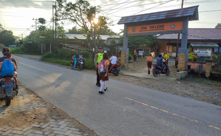 Tribratanews.polri.go.id – Ka SPKT Polsek Ledo Polres Bengkayang, Aipda Wahyudi dan Bripka Ignatius Guntur (Anggota Jaga), melaksanakan giat pengaturan Lalu Lintas di depan SD Negeri 02 Ledo, pada pukul.06.30 Wib. Sekaligus membantu menyebrangkan anak-anak sekolah Agar merasa aman, nyaman dan Lancar, ini merupakan Salah satu Porgram Strong Point, guna mencegah kemacetan, dan terjadinya kecelakaan.Kamis (12/01/2023)…