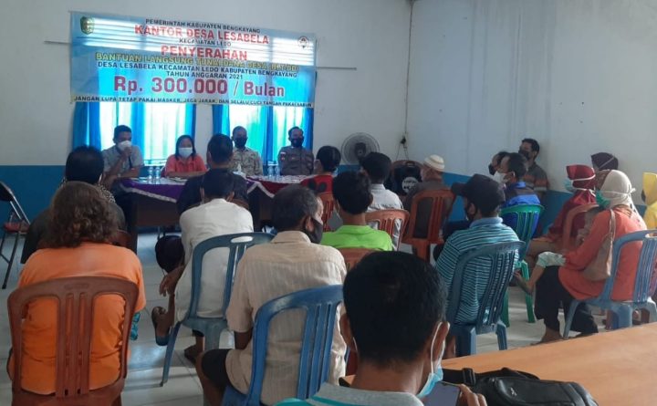 Menghadiri Penyaluran BLT DD di Desa Lesabela, Kanit Samapta Polsek Ledo Bripka Ignatius Guntur Menyampaikan Himbauan Kamtibmas Dan Mengajak Warga Untuk Selalu Mematuhi Protokol Kesehatan; (Kamis, 11/11/2021). Bantuan Langsung Tunai Dana Desa ( BLT DD ) adalah program pemerintah dalam rangka peduli warga yang terdampak covid-19. Terkait hal itu Desa Lesabela Kecamatan Ledo Kabupaten Bengkayang..