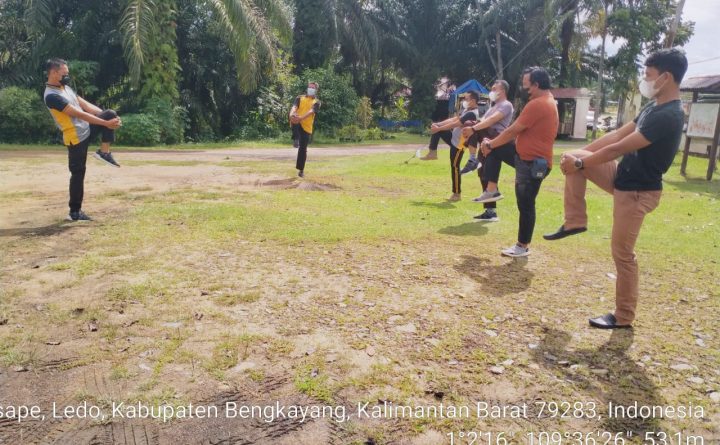 Polres Bengkayang – Polsek Ledo, “Mensana in Corporesano”, didalam tubuh yang sehat terdapat jiwa yang kuat. Filosofi tersebut yang harus kita miliki sebagai anggota Polri dalam mengemban tugas sehari-hari dalam memberikan pelayanan kepada masyarakat. Untuk memperoleh kesehatan jasmani, maka olah raga secara rutin setiap hari adalah jawabannya. Kegiatan olah raga pagi ini dipimpin oleh Kanit..