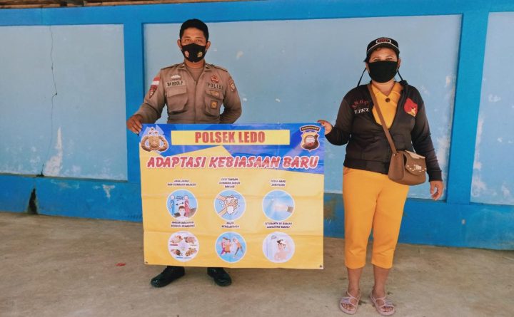 Polres Bengkayang – Polsek Ledo, melalui anggota Bhabinkamtibmas Polsek Ledo Briptu Tan Deden melakukan Sosialisasi Adaptasi Kebiasaan Baru (AKB) kepada masyarakat Desa Semangat, Kecamatan Ledo, Kabupaten Bengkayang, Selasa (01/11/2021). Dalam kesempatan tersebut Briptu Tan Deden mengajak dan menghimbau masyarakat Desa Semangat , Kecamatan Ledo, agar tetap mematuhi Protokol Kesehatan dalam setiap melakukan aktifitas diluar rumah..
