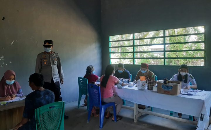 Polres Bengkayang- Kepolisian Sektor Ledo terus lakukan pengamanan serta monitoring pelaksanaan vaksinasi Covid 19 tahap ke 2 di Desa Suka Damai Kecamatan Ledo Kab. Bengkayang, Kalimantan Barat pada, Senin (01/10/2021) Pkl 09.00 Wib. Pengamanan serta Monitoring kali ini di pimpin langsung oleh Kapolsek Ledo Iptu Asep Maulana, Kanit Intelkam Bripka Honi Suryo Prayogo, Kanit Samapta..