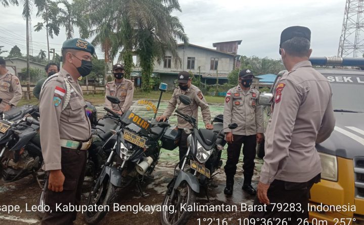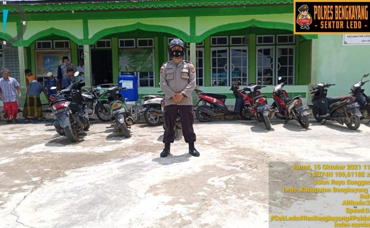 Polsek Ledo Polres Bengkayang menurunkan personilnya untuk melakukan Pengamanan Sholat Jumat. Hal ini dilakukan untuk memberikan rasa aman kepada warga yang melaksanakan ibadah shalat Jumat di Masjid Darul Fikri, Desa Lesabela Kec. Ledo, Jumat (15/10/2021). Kapolsek Ledo IPTU Asep Maulana mengatakan dengan kehadiran personil Polsek Ledo di lapangan saat melaksanakan PAM sholat jumat dapat tercipta..