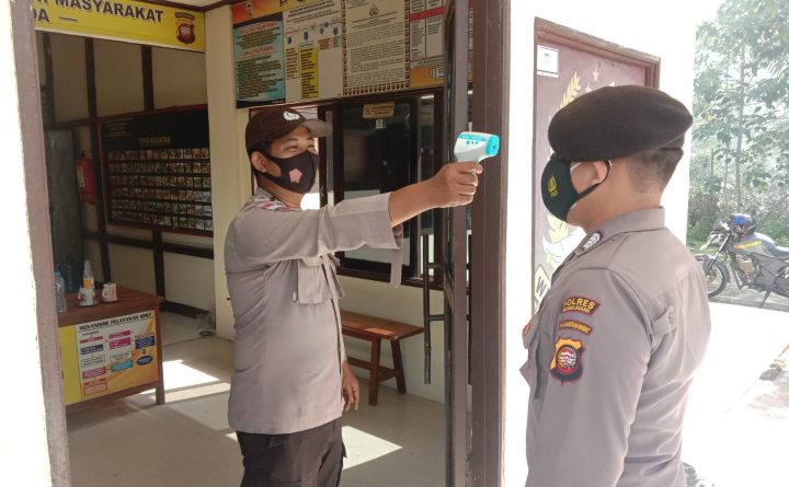 Walaupun penyebaran Virus Covid 19 sudah mulai mengalami penurunan yang cukup menggembirakan personil Polsek Ledo tidak menghentikan upaya untuk mengantisipasi penularan wabah Covid-19 dilingkungan intern kerja, Personil Polsek Ledo jajaran Polres Bengkayang Polda Kalbar, konsisten menerapkan protokol Kesehatan sebelum memasuki Kantor, Kamis (14/10/2021) Pkl 08.00 Wib. Sebelum pelaksanaan apel pagi personil Polsek Ledo tetap lakukan..