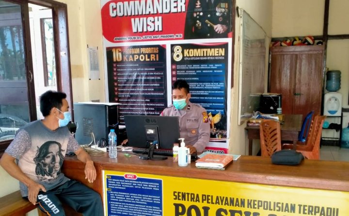 Polres Bengkayang – Pelayanan SPKT Polsek Ledo Polres Bengkayang sosialisasi Sapu Bersih Pungutan Liar dan penerapan Protokol Kesehatan seperti Wajib menggunakan Masker kepada warga yang datang ke Pelayanan SPKT Polsek Ledo, Senin (27/9/2021). Ka SPKT III Polsek Ledo, Aipda Jhonly, memberikan sosialisasi dan himbauan kepada warga yang datang ke pelayanan SPKT Polsek Ledo untuk menolak dan..