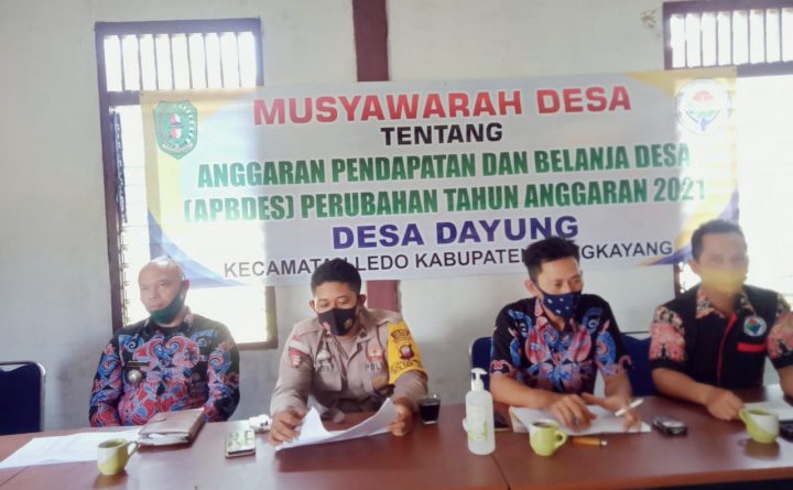 Bhabinkamtibmas Desa Dayung Kec. Ledo Briptu Tan Deden menghadiri kegiatan musyawarah desa (Musdes) yang dilaksanakan di Kantor Desa Dayung, Kamis (19/7/2021). Giat Musdes agenda pembahasan dan menyepakati tentang rancangan rencana kerja pemerintah (RKPDes) Tahun 2022. Turut hadir dalam giat tersebut Kades Dayung Sdr. David Nimrod, Pendamping Desa, Ketua BPD Desa Dayung, Pengurus RT dan Linmas..