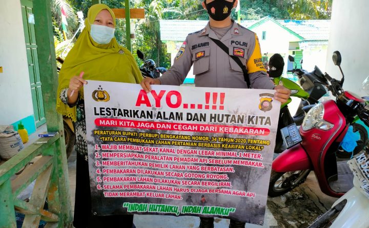 Polres Bengkayang – Mencegah dan mengantisipasi kebakaran hutan dan lahan, Anggota Bhabinkamtibmas Polsek Ledo sosialisasikan kebakaran hutan dan lahan. Jumat/20/Agustus/2021. Antisipasi kebakaran hutan dan lahan, anggota bhabikamtibmas Polsek Ledo di sebar di masing-masing Desa binaan untuk memberikan himbauan secara rutin dan berkelanjutan dengan harapan Masyarakat Kecamatan Ledo tidak membuka lahan dengan cara membakar serta warga..
