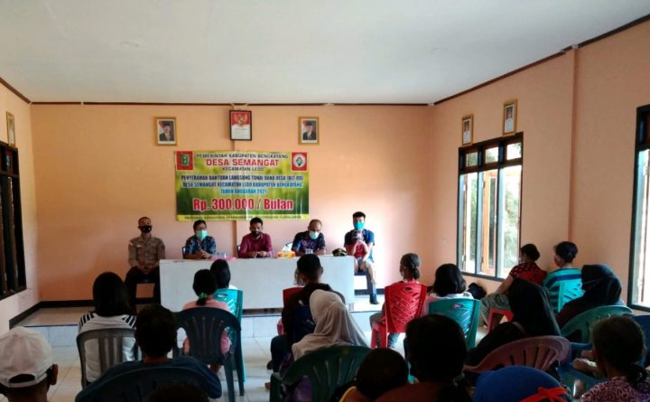 Kanit Binmas Polsek Ledo Bripka Harun Sampaikan Himbauan Kamtibmas Dan Himbauan Patuhi Prokes Pada Kegiatan Penyaluran BLT DD di Desa Semangat Kecamatan Ledo Kabupaten Bengkayang; (Jumat, 13/08/2021). Bantuan Langsung Tunai Dana Desa ( BLT DD ) adalah program pemerintah dalam rangka peduli warga yang terdampak covid-19. Adalah Desa Semangat yang kali ini melakukan penyaluran BLT..