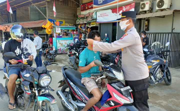 Kapolsek Ledo Iptu Asep Maulana Bersinergi Dengan Unsur Forkompimcam Ledo Membagikan Masker Gratis Kepada Warga Di Pasar Ledo Desa Lesabela Kecamatan Ledo; (Senin, 16/08/2021). Dalam rangka menyambut HUT kemerdekaan RI yang ke 76 dimasa pandemi seperti saat sekarang ini dan sebagai upaya untuk memutus rantai penyebaran Covid-19 khususnya di Kecamatan Ledo, Kepolisian Sektor Ledo membagikan..