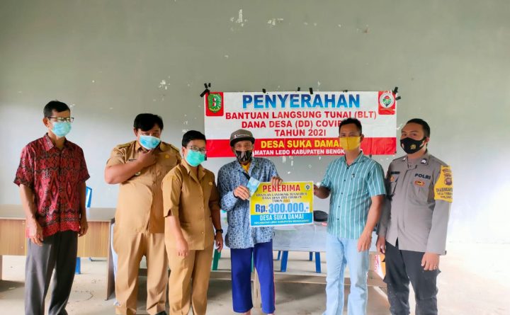 Bhabinkamtibmas Polsek Ledo Untuk Desa Sukadamai Briptu Joko Sampaikan Himbauan Kamtibmas Dan Himbauan Patuhi Prokes Pada Kegiatan Penyaluran BLT DD di Desa Sukadamai Kecamatan Ledo Kabupaten Bengkayang; (Senin, 16/08/2021). Bantuan Langsung Tunai Dana Desa ( BLT DD ) adalah program pemerintah dalam rangka peduli warga yang terdampak covid-19. Adalah Desa Sukadamai yang kali ini melakukan..