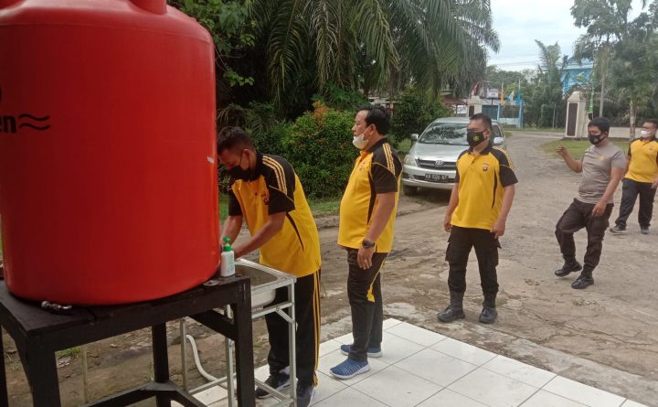 Polres Bengkayang – Polsek Ledo, Semenjak terjadinya Pandemi Covid -19 mewajibkan kepada anggota serta masyarakat yang berkunjung ke Mako Polsek Ledo untuk memakai masker dan menerapkan protokol kesehatan Covid -19 sebelum masuk Mako lakukan Cuci Tangan dan Cek Suhu Tubuh, Jum’at (06/08/2021).. Pemerintah telah mengeluarkan peraturan baik perpu maupun per Undang- Undangan terkait penanganan virus..