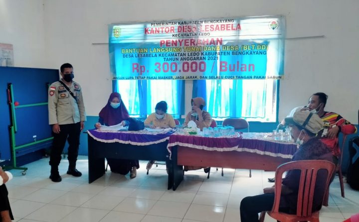 Polres Bengkayang – Polsek Ledo, Personil Piket Spkt Regu 2 melaksanakan giat Pam serta Monitoring penyaluran BLT DD Tahap 1 bulan ke 4,5,6 ( April, Mei, Juni ) 2021 yang bertempat di Kantor Desa Lesabela Kecamatan Ledo, Kab. Bengkayang pada Senin (09/08/2021) Pkl 08.00 Wib. Adapun Bantuan Langsung Tunai (BLT) tersebut bersumber dari Dana Desa..