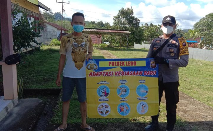 Bhabinkamtibmas Polsek Ledo Bripda Ega Diamanta lakukan Sosialisasi Adaptasi Kebiasaan Baru (AKB) kepada masyarakat Desa Serangkat, Kecamatan Ledo, Kabupaten Bengkayang, Sabtu (17/07/2021). Dalam kesempatan tersebut Bripda Ega Diamanta mengajak dan menghimbau masyarakat Desa Serangkat , Kecamatan Ledo, agar tetap mematuhi Protokol Kesehatan dalam setiap melakukan aktifitas diluar rumah dengan menggunakan Masker, menjaga jarak dan rutin..