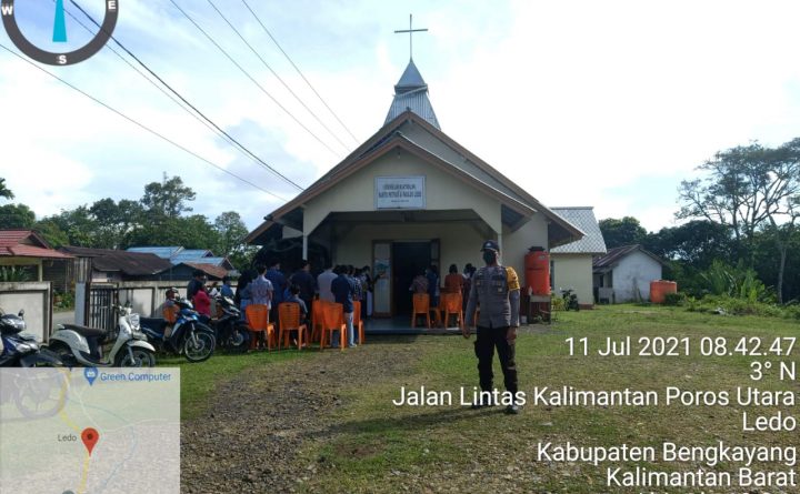 Salah satu kegiatan pelayanan kepada masyarakat yang diberikan oleh kepolisian Polsek Ledo Polres Bengkayang yaitu dengan melaksanakan pengamanan ibadah kebaktian digereja yang rutin dilaksanakan setiap hari Minggu. Kali ini pengamanan ibadah di Gereja Katolik Santo Petrus dan Paulus dan Gereja PIBI Kec. Ledo dilaksanakan oleh Bripka Ali Imron dan Bripda Ega Owissa, Minggu (11/7/2021). Kegiatan..