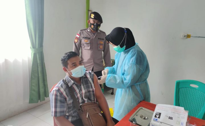 Polres Bengkayang – Kanit Samapta Polsek Ledo Polres Bengkayang Polda Kalbar melakukan pengamanan dan monitoring pada saat pelaksanaan vaksinasi covid-19 bagi Tenaga Guru di Puskesmas Ledo. Senin (21/06/2021). Pelayanan Kepolisian Sektor Ledo kali ini berupa pengamanan dan monitoring tersebut dilaksanakan oleh Kanit Samapta Polsek Ledo untuk memastikan pelaksanaan vaksinasi covid19 bagi tenaga guru tersebut berjalan..