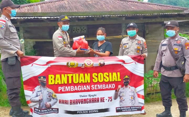 Polri terus melanjutkan kegiatan bakti sosial dengan memberikan paket sembako kepada Purnawirawan dan Warakawuri yang berdomisili di wilayah Hukum Polsek Ledo. Dalam rangka Menyambut Hari Bhayangkara ke-75, Polsek Ledo pada, Jum’at (25/06/2021). Kapolsek Ledo Polres Bengkayang Polda Kalbar Iptu Asep Maulana Yang turun Langsung Dalam memberikan Paket Bansos Kepada Keluarga Purnawirawan dan Warakawuri mengatakan sebanyak..