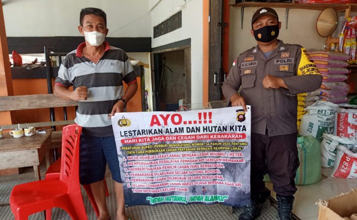 Bhabinkamtibmas Desa Jesape Bripka Ali Imron Laksanakan Himbauan Karhutla menggunakan Bener,Sabtu (05/06/2021). Walau masih musim penghujan Bhabinkamtibmas desa jesape Bripka Ali Imron tetap laksanakan Himbauan Karhutla,hal tersebut sengaja dilakukannya demi mengedukasi masyarakat terutama didesa binaannya demi membuat masyarakat sadar terkait bahayanya karhutla sehingga nanti harapannya pada saat memasuki musim kemarau masayarakat pada saat berladang tidak..