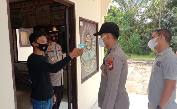 Kapolsek Ledo beserta Anggota Polsek Ledo disiplin menerapkan protokol kesehatan Covid19 dilingkungan Polsek Ledo sebagai langkah awal mendeteksi dan pencegahan penyebaran Covid-19. Senin, (07/06/2021). Seperti yang terhlihat Kapolsek Ledo beserta anggota sebelum melaksanakan tugas sedang menerapkan protokol kesehatan seperti mencuci tangan dan mengecek suhu tubuh apabila ada anggota yang di cek suhu nya tinggi maka..