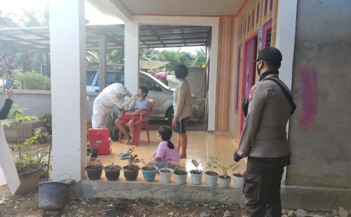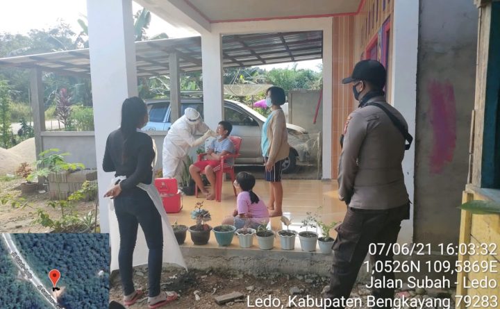 Bhabinkamtibmas Desa Lomba Karya Polsek Ledo bersama Tim Tracing dari Puskemas Ledo melakukan Tracing terhadap warga dan keluarga yang kontak erat dengan pasien yang terkonfirmasi positif Covid-19 di Desa Lomba Karya Kec. Ledo, Selasa (8/6/2021). Kegiatan ini dilakukan karena adanya salah seorang warga Desa Lomba Karya Kec. Ledo yang dinyatakan terpapar virus Covid-19 sehingga tim..
